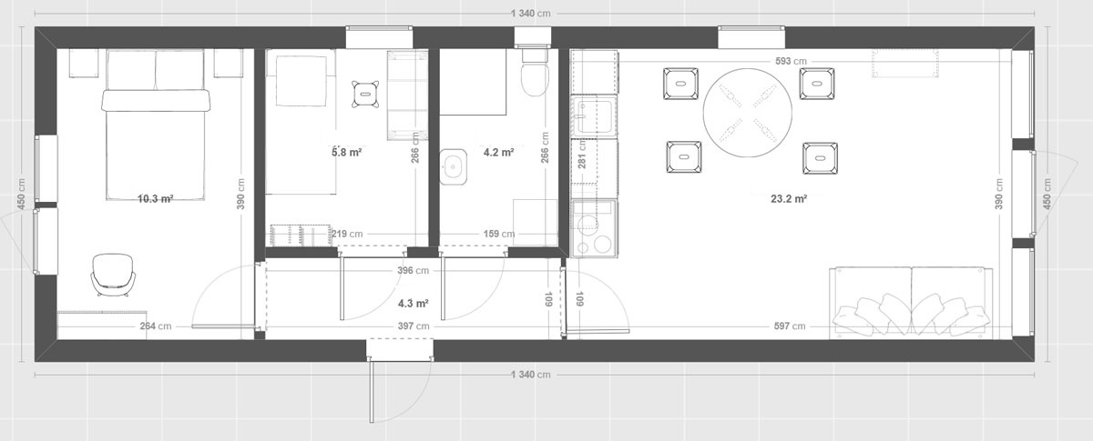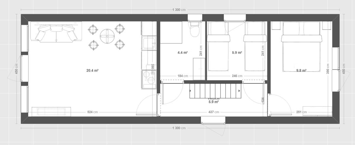 Preis für ein ganzjähriges Modulhaus mit 45 m²: 85 000 € brutto