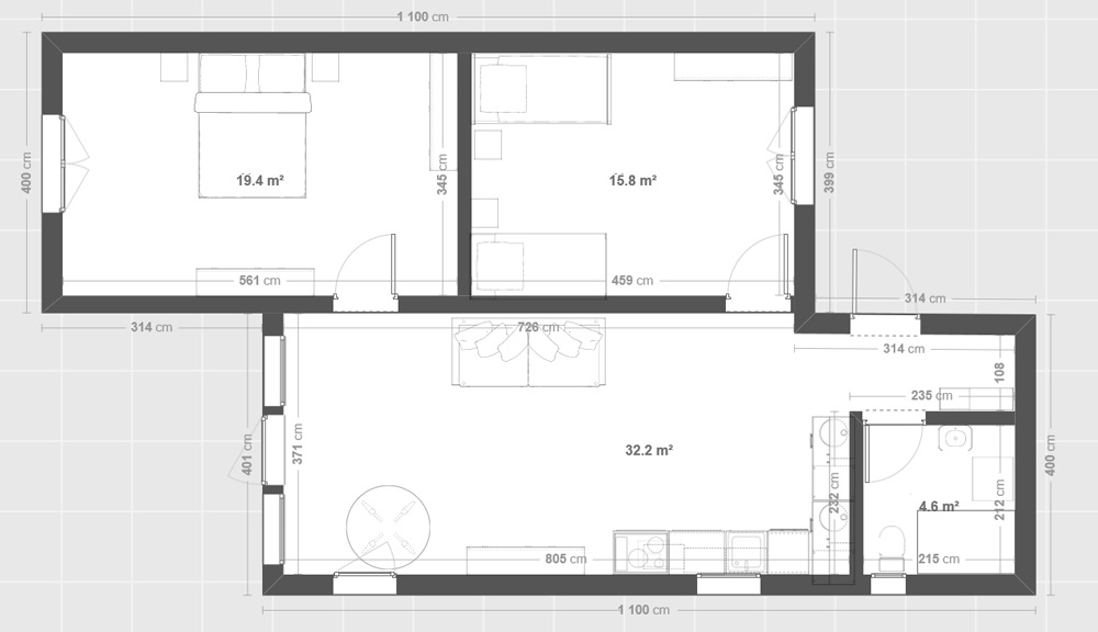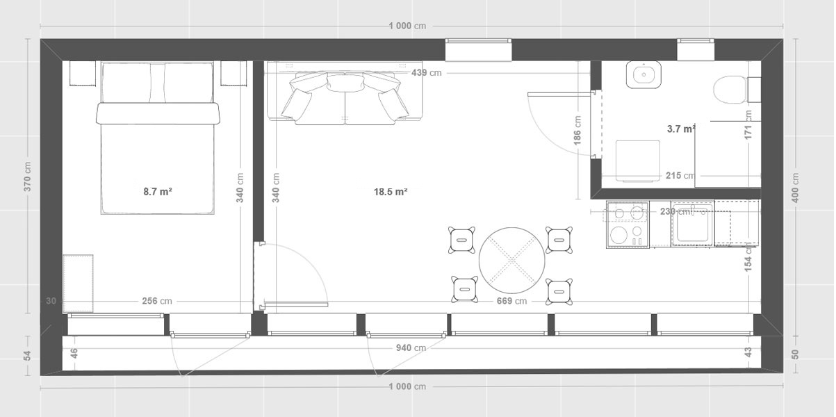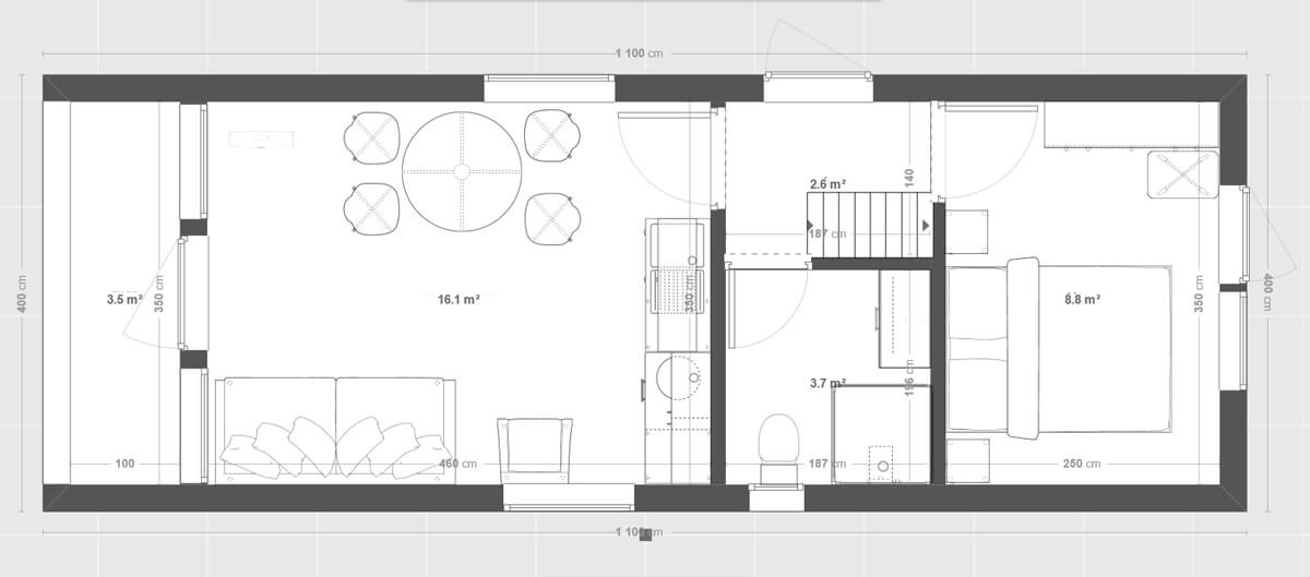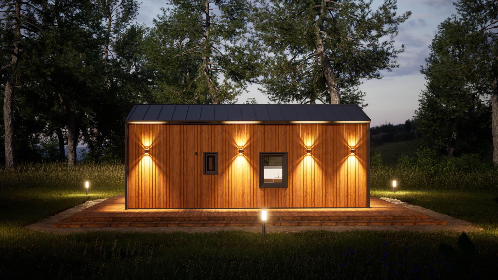 Preis für ein ganzjähriges Modulhaus mit 44 m²: 83 000 € brutto